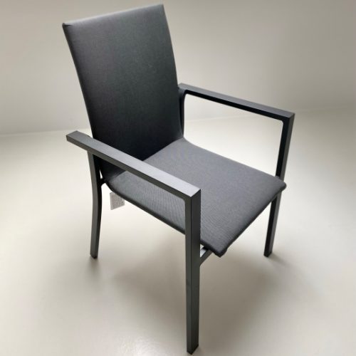 The gunmetal colored aluminium chairs with OLEFIN seating surface impart a stylish look and exclusivity to any garden or patio.