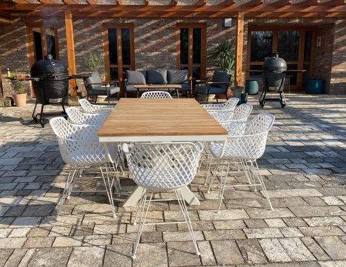 Biztos, hogy ennek a készletnek számos elismerő pillantást köszönhet majd. Az exkluzív szett egy fehér alumínium asztalból és 12 kényelmes, alumínium székből áll.