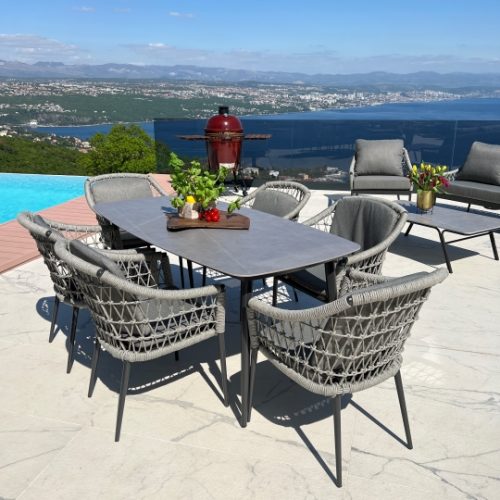 A stabil por-szórt alumíniumváz rendkívül időtálló és valódi stílust ad a bútornak. Az étkezőgarnitúra ennek köszönhetően abszolút időjárás- és UV-fényálló, strapabíró, kosztaszító, valamint egyszerűen tisztítható. Ideális a házba, kertbe vagy a teraszra.