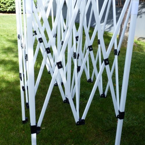 Erős, 6 szögletű acél vázszerkezet (átmérő 45mm,0,8 mm) vízálló ponyva.