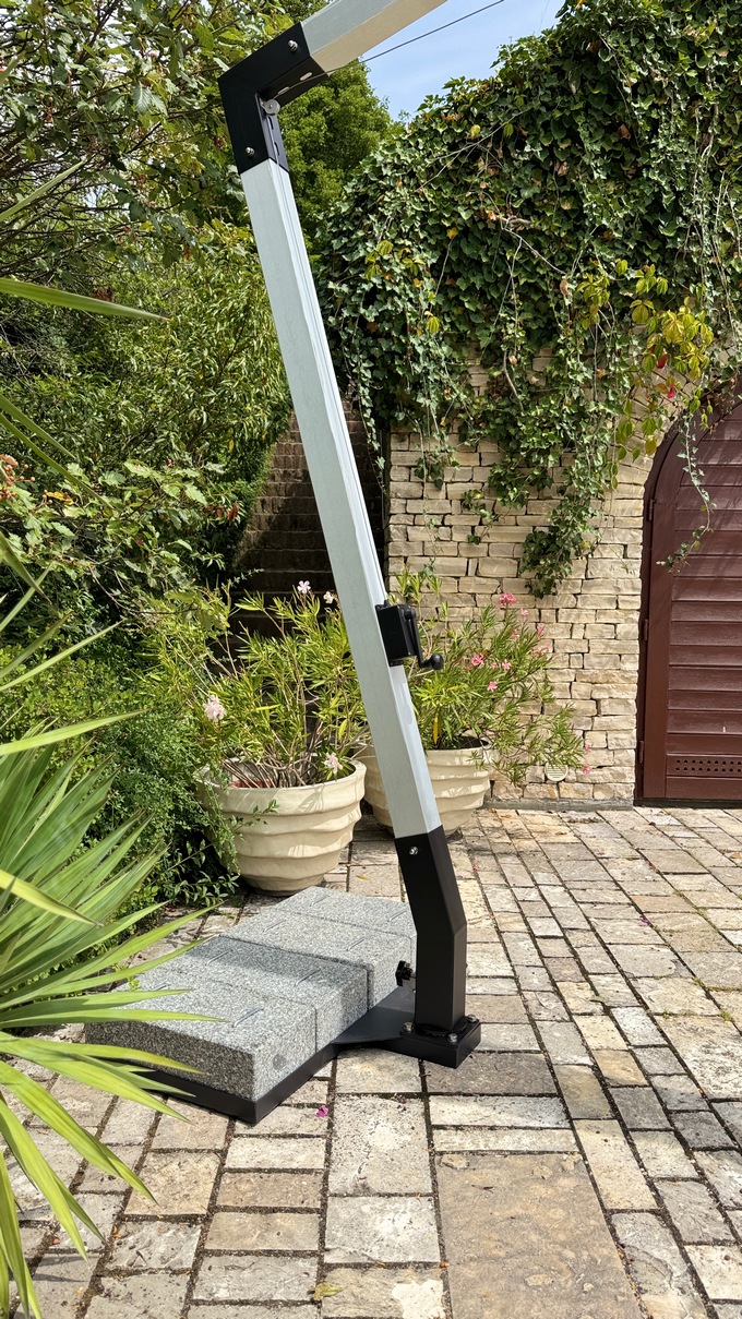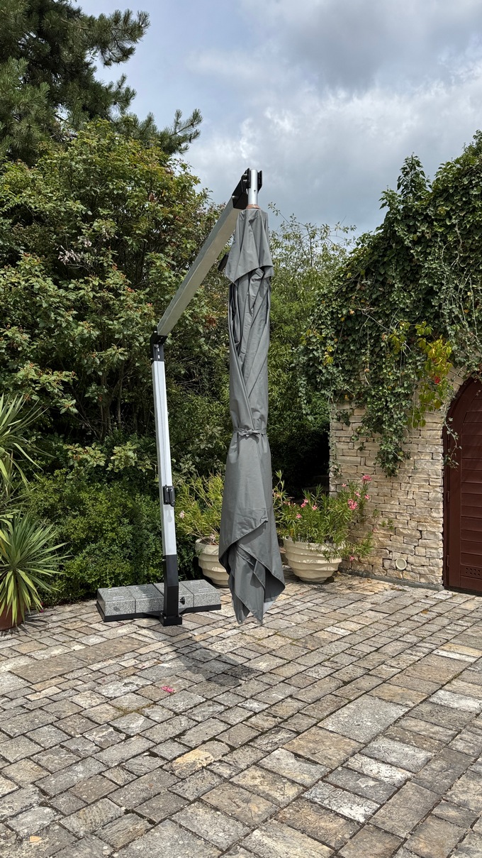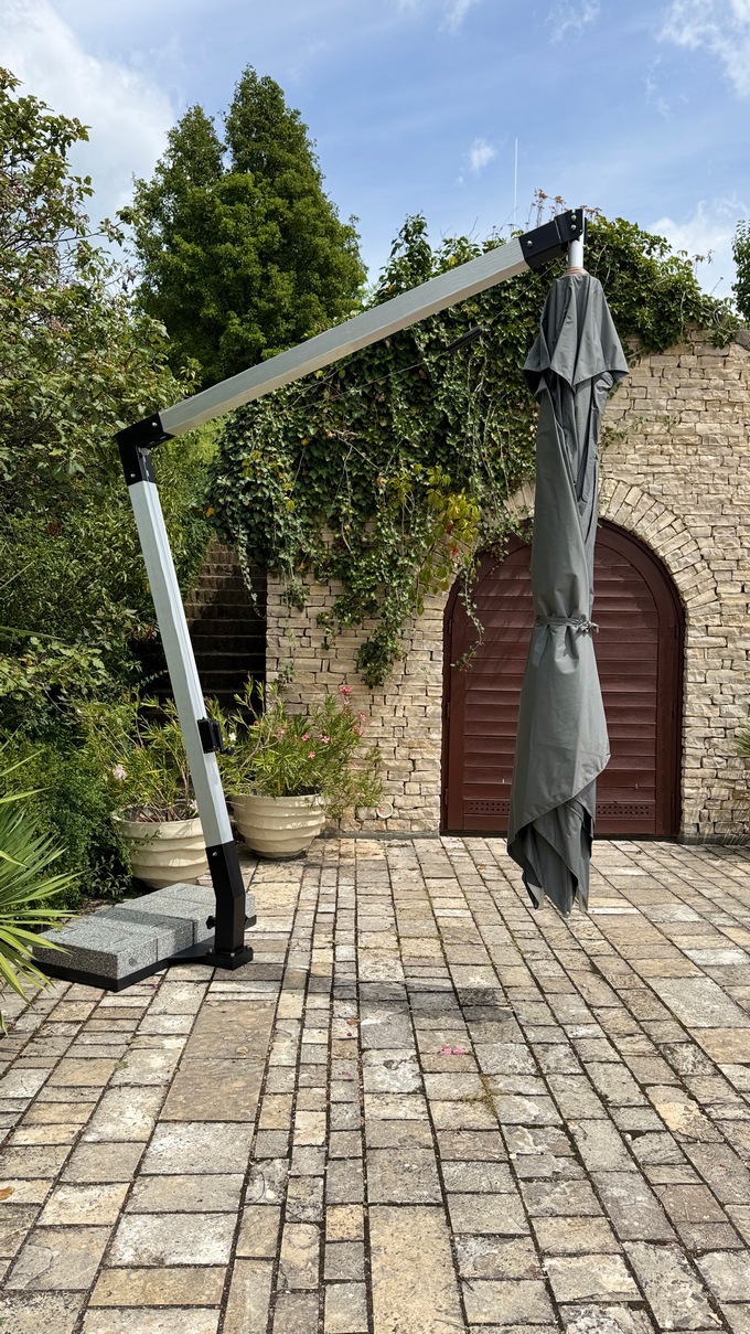 A luxus és a funkcionalitás tökéletes harmóniája. Ez a modern, oldalkaros napernyő ideális választás, ha stílusosan szeretnéd árnyékolni a medencepartot, a kertet vagy a teraszt. Nagyméretű, dönthető és forgatható ernyője maximális védelmet nyújt a napsugarak ellen, míg oldalkaros kialakítása szabadon hagyja a teret a bútorok elrendezéséhez.