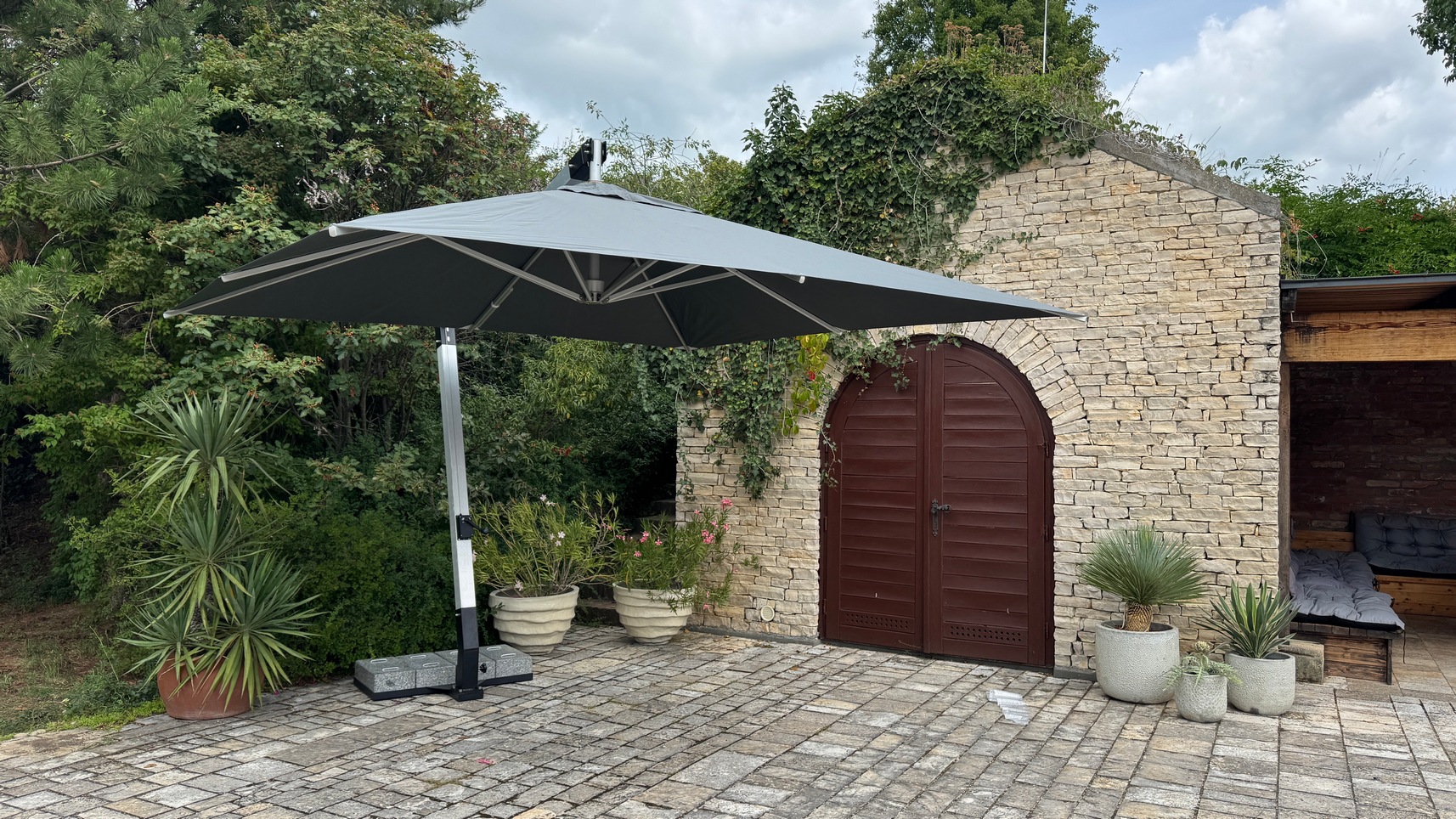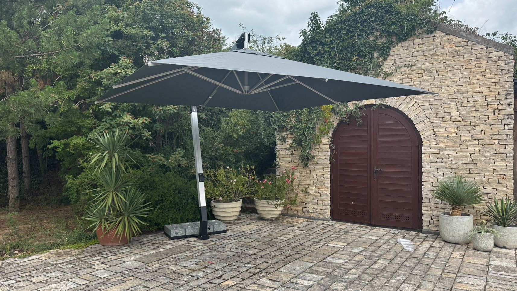 360°-ban forgatható és dönthető – A nap mozgásához igazítható, így mindig optimális árnyékot biztosít.